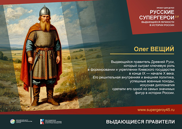 Олег Вещий. Выдающийся правитель Древней Руси, который сыграл ключевую роль в формировании и укреплении Киевского государства в конце IX — начале X века. Его решительная внутренняя и внешняя политика, успешные военные походы, искусная дипломатия сделали его одной из самых значимых фигур в истории. Олег Вещий оставил неизгладимый след в истории Руси, укрепив национальное самосознание и заложив основы для дальнейшего развития русской государственности.